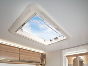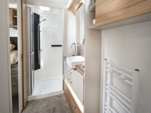 - Micro Heki rooflight with night blind and drop-down towel rail (model specific)