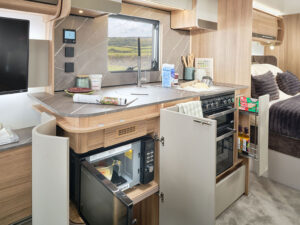 - Thetford 156 litre fridge with 29 litre freezer compartment (twin axle models only)