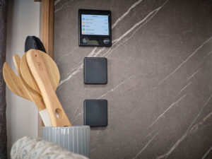 - Drop down hob cover worktop in matching ‘Basalt’ finish