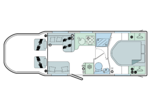 • Front lounge with twin dedicated rear travel seats, including 3-point seatbelts and up to three ISOFIX fitting (model specific)