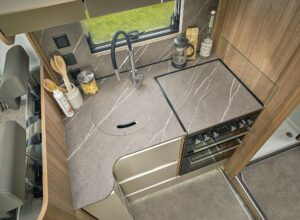 • Fully equipped kitchen with a Thetford 137L absorption tower fridge
