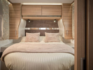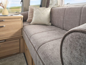 - Front lounge converts to twin singles or a double bed, available in two fabric options
