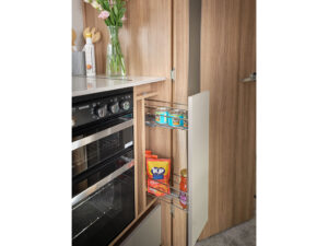 - Bailey ‘Natural Oak’ curved overhead locker doors with ‘Pearl Bronze’ detailing