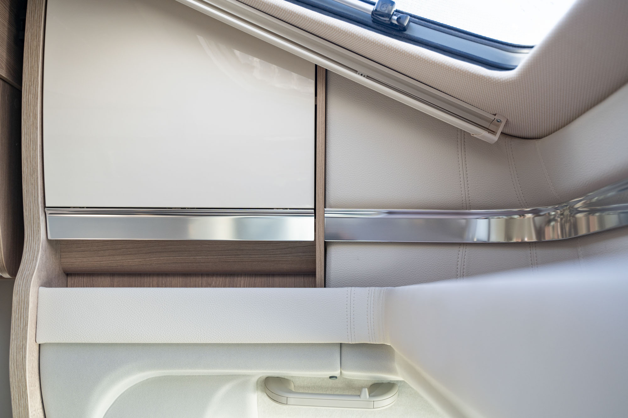 The Ecovip low-profile has a large lounge with face-to-face bench seats. 5 people can be seated around the fold-out dining table. It’s a perfect layout, both for entertaining and in terms of ease of movement.